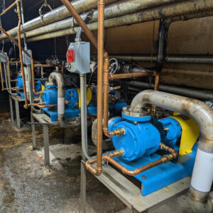 Recently we provided an industrial customer with 6 new Viking LL1227A Internal Gear Pumps with O-Pro Cartridge Seals coupled to Nord Gearmotors to replace various Blackmer Vane Pumps and Waukesha Lobe pumps. The existing pumps needed replacement due to seal failures and persistent leaks, and the customer wanted a robust and easily maintained pump with an improved seal configuration. Also, we were able to add jacketing to the pumps to allow the product to maintain a constant temperature and reduce the overall temperature in the room for safety and energy conservation. These pumps are being used to offload various oils from rail cars and tanker trucks into holding tanks.