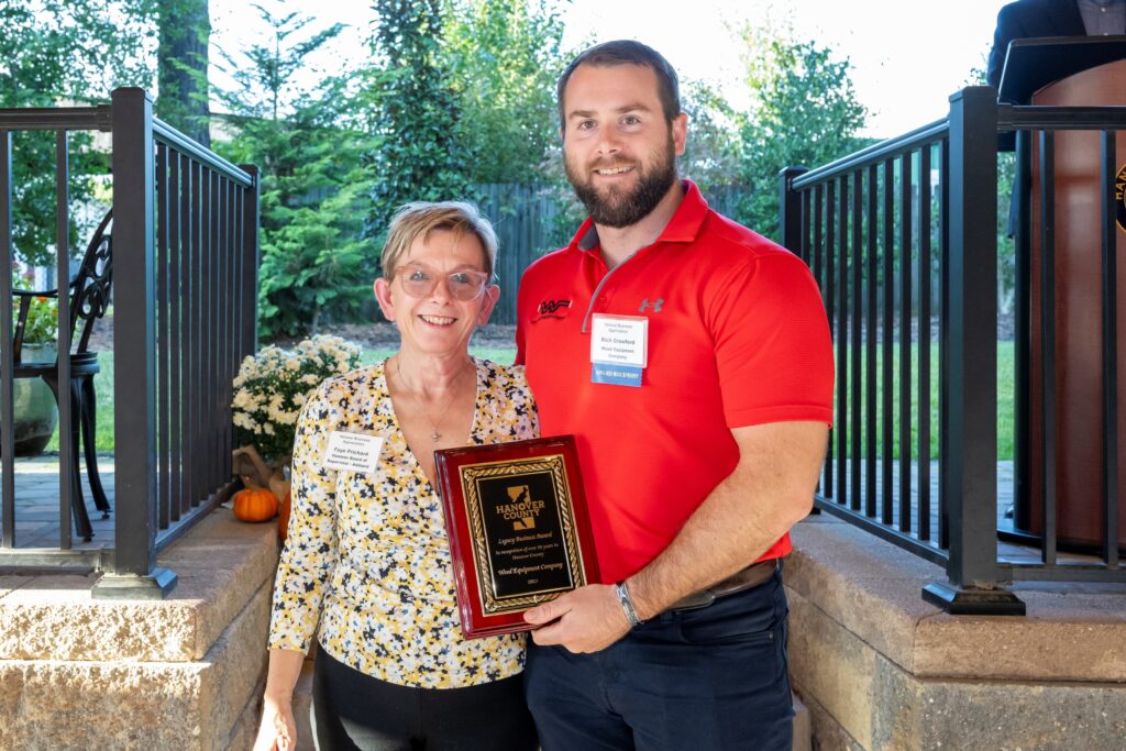Last week, Wood Equipment Company was recognized by Hanover County, VA with a Legacy Business Award for operating over 50 years in the County. Hanover Board of Supervisors member Faye Prichard from the Ashland District presented Rich Crawford with the award during the Annual Hanover County Business Appreciation Event. This event is hosted every year to highlight and give appreciation to the local businesses that are involved in the County and Community. We are proud to have reached this milestone, and we look forward to remaining a fixture in the local community for another 50 years!